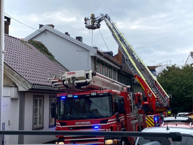 Den idylliske stemningen blir gradvis borte når gaten er i ferd med å fylles med røyk som kommer ut fra et av trehusene nederst i gaten. Våre kolleger fra ambulansen går i BAPS 1 og begynner å varsle de som lytter om brann i Langgata. Parallelt har 110-sentralen mottatt flere telefoner om det samme og har allerede varslet ut en slukkegruppe og innsatsleder brann, som var artikkelforfatter sin rolle denne vakta.