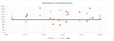 Væsketapet under øvelsen varierte mellom 0,26 % til 1,93 %. Mediangjennomsnittet var 1,11 %.